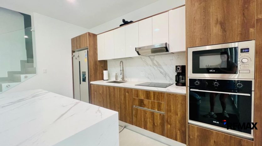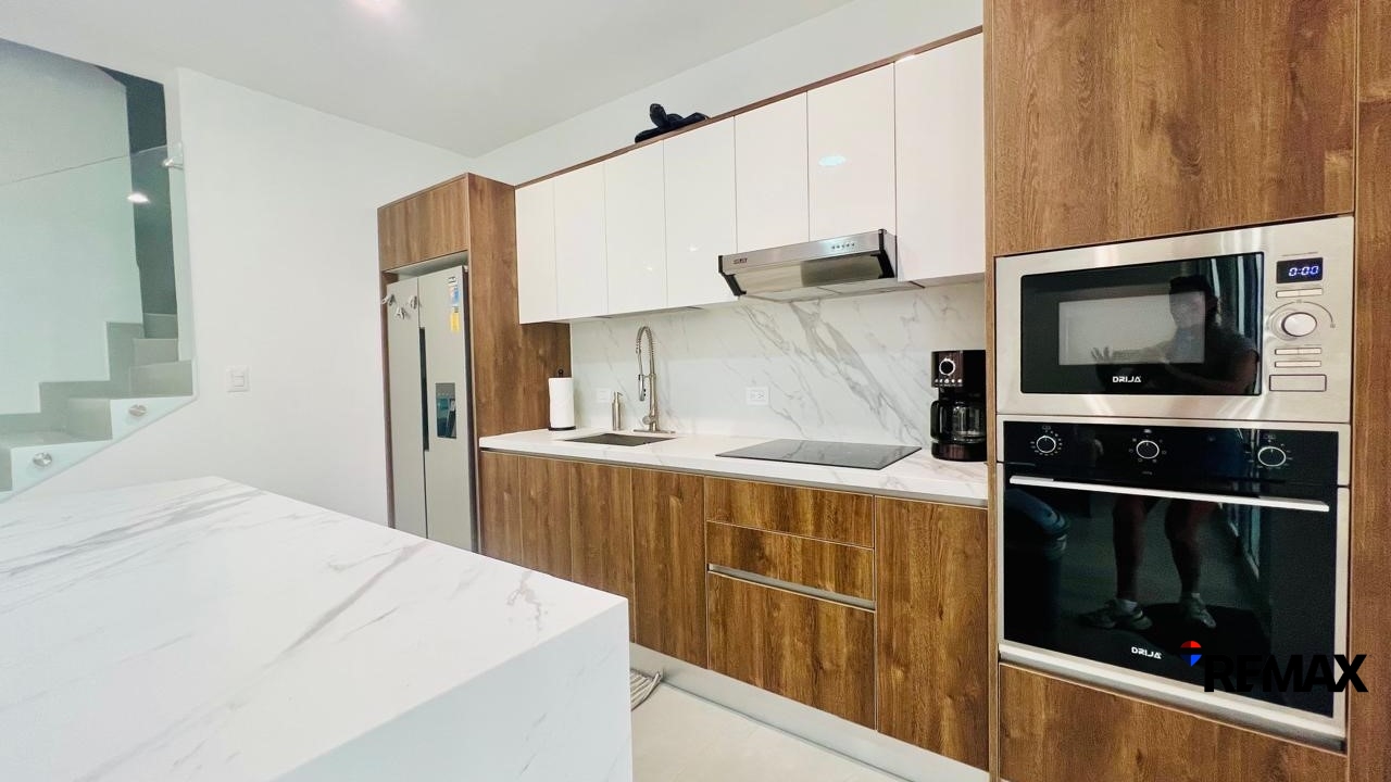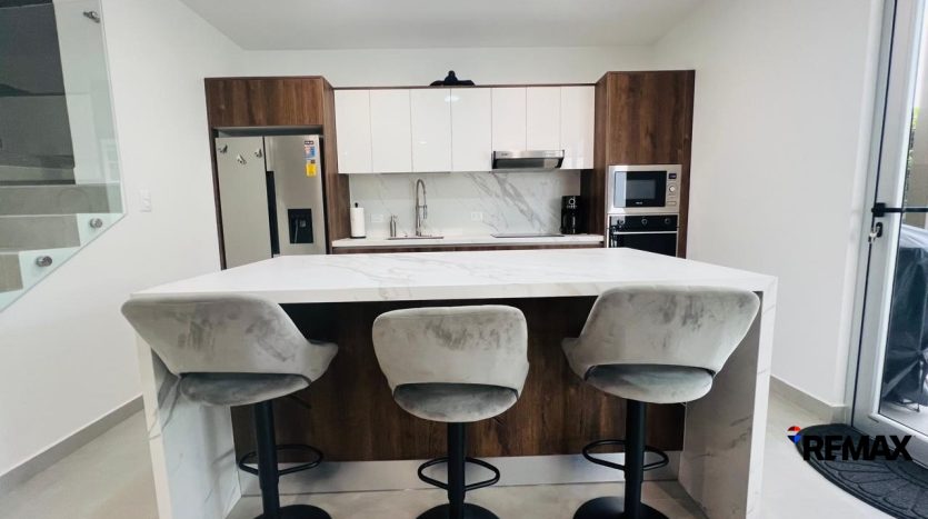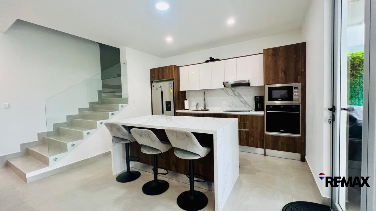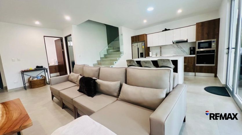 La casa presenta un diseño moderno con elegantes tonos neutros, creando un ambiente luminoso y acogedor que atrae tanto a propietarios como a inversionistas.