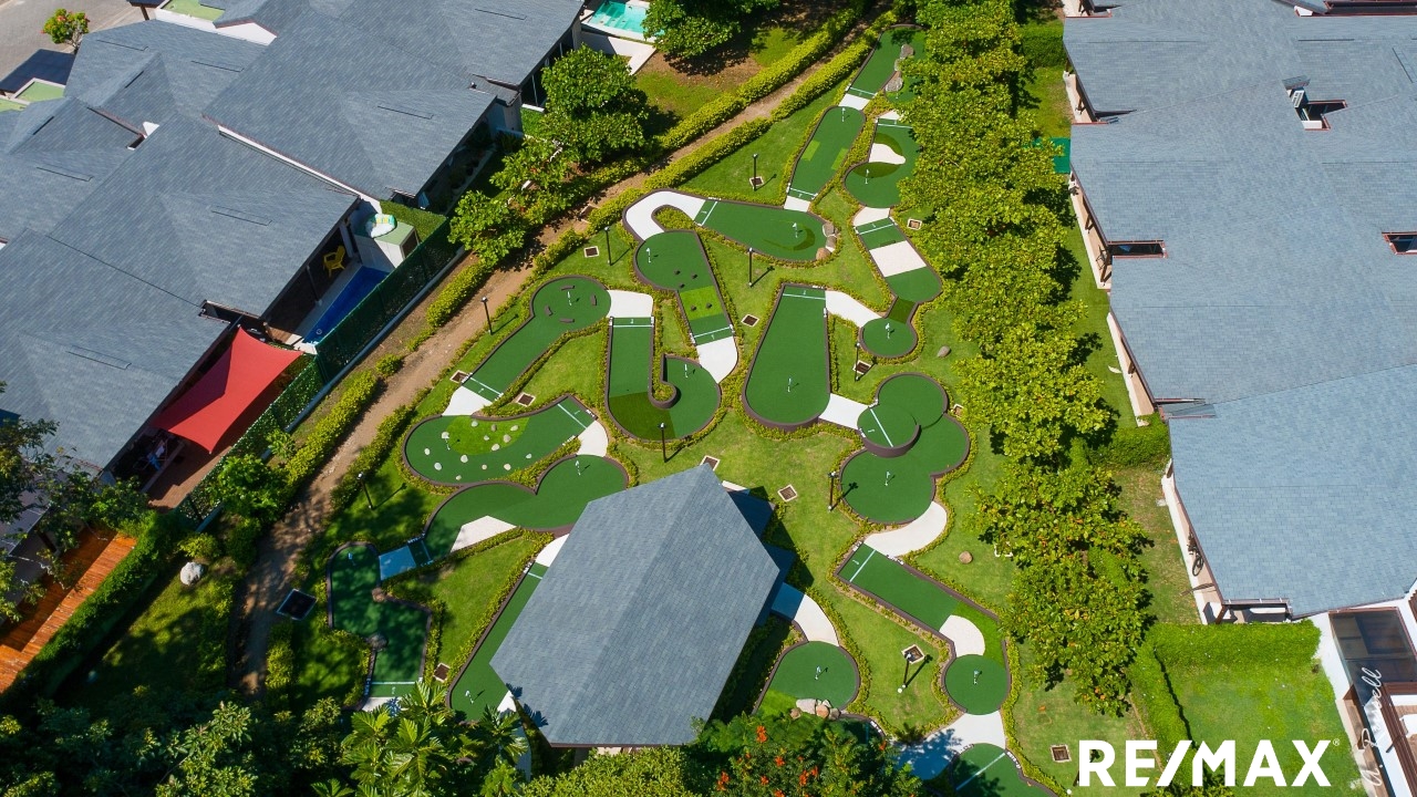 El proyecto cuenta con una amplia variedad de amenidades diseñadas para el descanso y la vida activa. Los residentes tienen acceso a una piscina tipo resort, piscina semiolímpica, cancha de tenis, cancha de voleibol, mini golf y un gimnasio completamente equipado. Estas facilidades no solo elevan la calidad de vida, sino que también aumentan el atractivo para alquileres vacacionales, ideal como residencia permanente, casa de vacaciones o propiedad de inversión en Costa Rica.