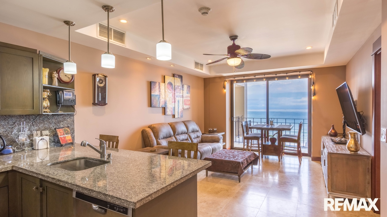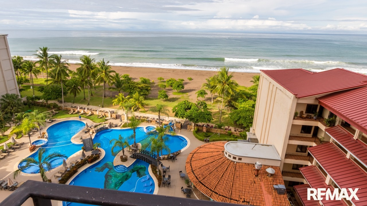 Croc’s Casino Resort 7702 is a beautiful 7th-floor, 1-bedroom oceanfront condo offering 95 square meters (1,022 square feet) of well-designed living space in one of Jacó’s premier beachfront resorts. Located directly in front of the ocean, this condo enjoys sweeping Pacific views from the kitchen, living room, and bedroom, giving you an incredible coastal backdrop throughout the home.