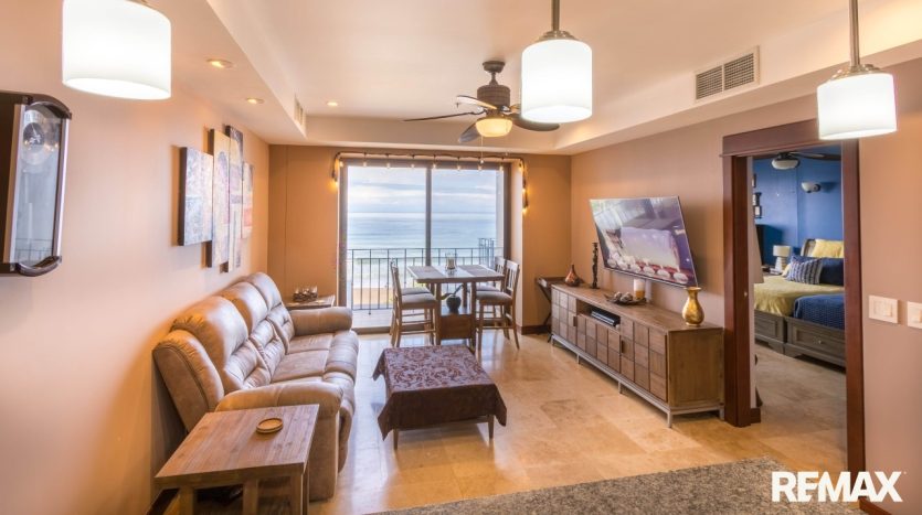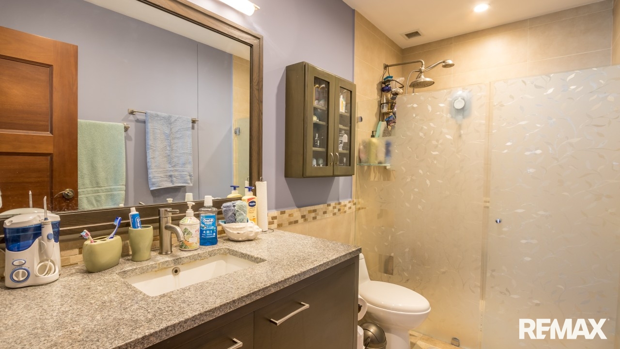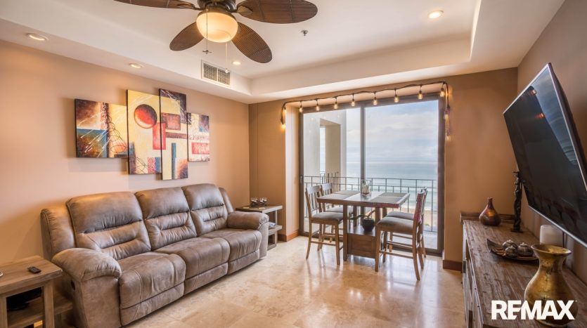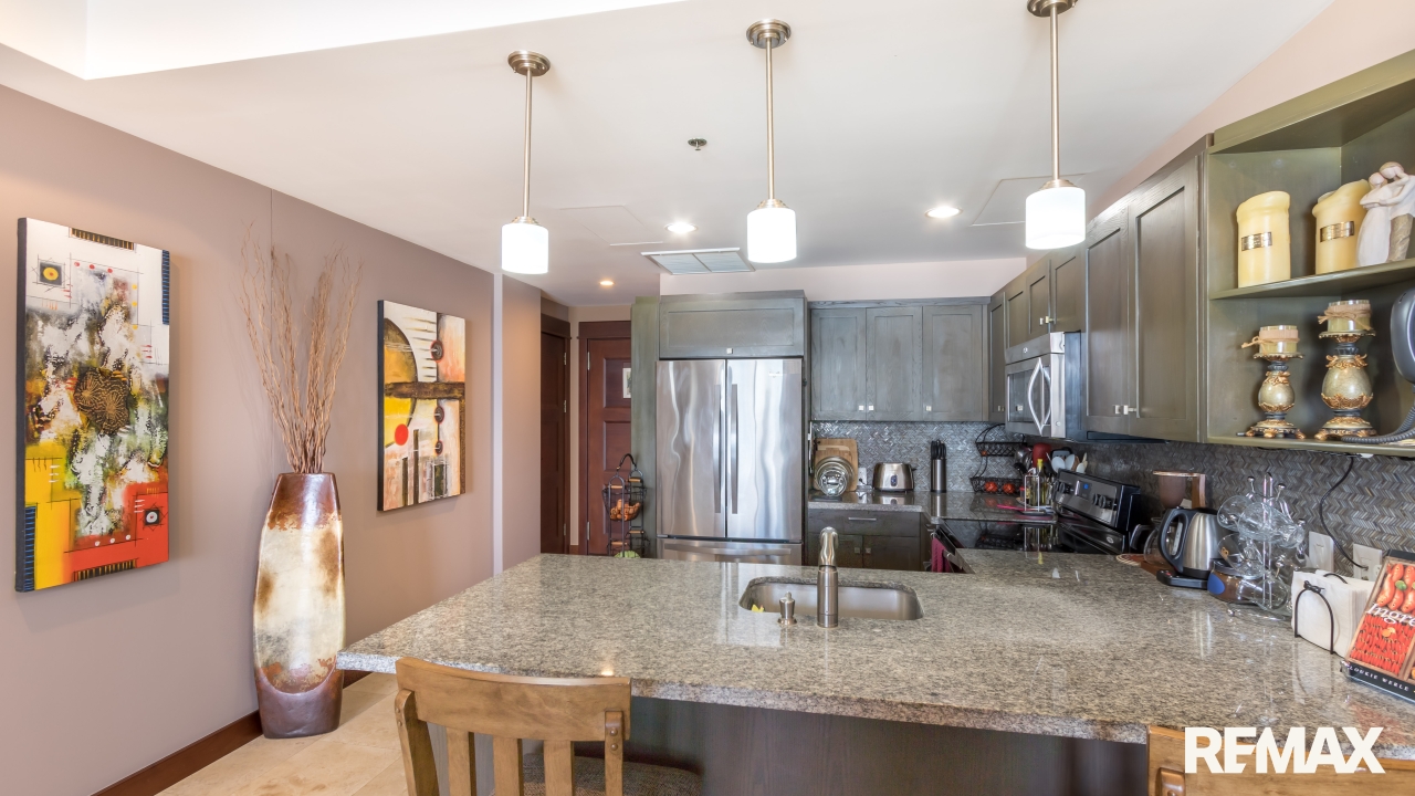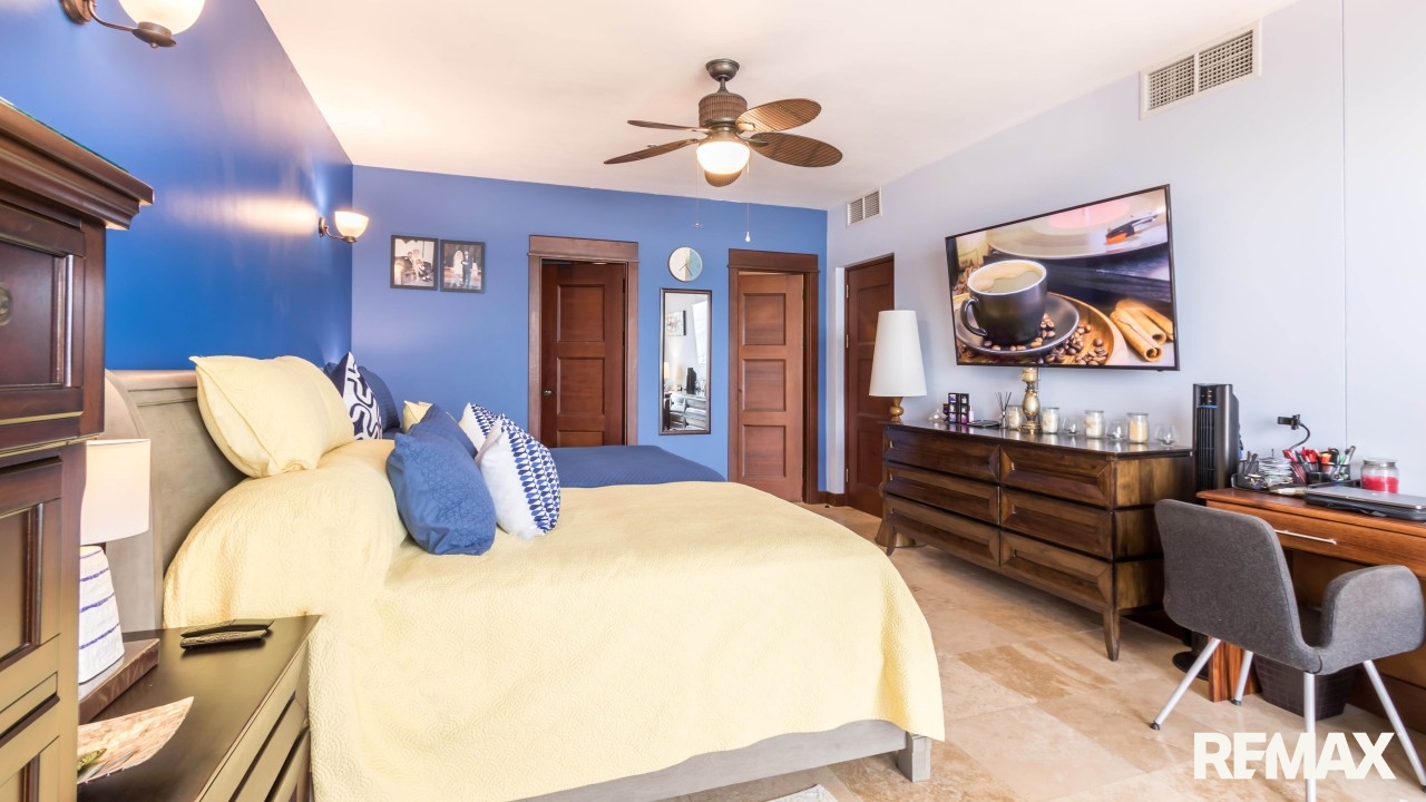 The spacious bedroom offers comfort and privacy with its own private balcony, walk-in closet, and ensuite bathroom. A second balcony off the living area creates another inviting place to relax and enjoy the ocean breeze. The condo also includes a half bathroom for guests and a separate laundry room, adding convenience and functionality. High-end finishes such as granite countertops and stainless steel appliances complete the home’s luxurious feel.
