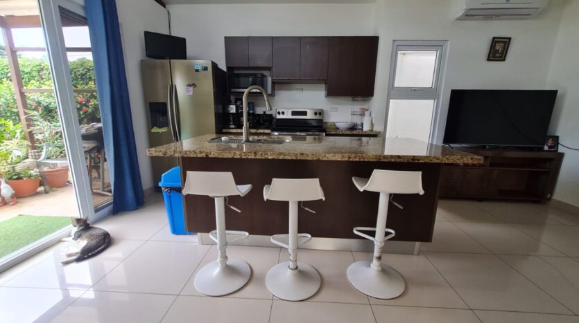 This Jaco Beach furnished house offers a comfortable and convenient home. Located in one of the most central yet peaceful condominium settings in town. The property offers 230 m² of indoor and outdoor space. Its three-bedroom, two-bath layout creates a practical and inviting environment for everyday living. You can also use it comfortably for longer stays or as a rental option. The home is sold fully furnished and in excellent condition. You can settle in immediately and begin enjoying the easy coastal lifestyle.