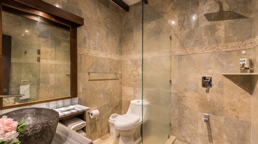 Cuenta con 4 dormitorios , 2 en suit y 3 banos y medio; el dormitory principal es muy amblio y cuenta con una acogedora terraza que ve al area de piscina y a los cerros del amanecer,