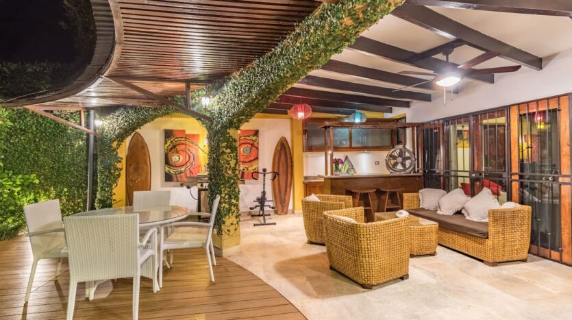 Exceptional luxury house in the center of Jaco is offered fully furnished and is perfect for renting or living in it. Very safe and in excellent condition with top quality finishes, mainly imported from the East with a warm and relaxed atmosphere,