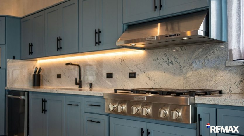 The entertainer’s dream kitchen includes a large eat-in island with seating for large groups, a full bar, and high-end appliances—perfect for hosting unforgettable gatherings.