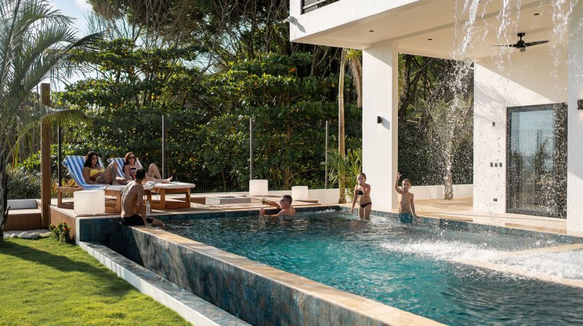Salga al oasis privado frente al mar, que incluye una gran piscina con luces LED, jacuzzi y amplios espacios para relajarse. Suba al rancho y terraza del atardecer en el tercer piso, el lugar ideal para disfrutar de cócteles con amigos mientras el sol se esconde en el Pacífico.