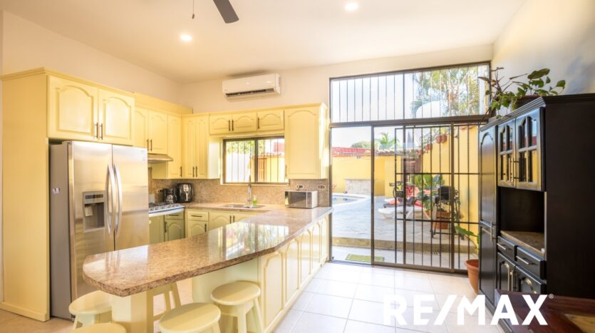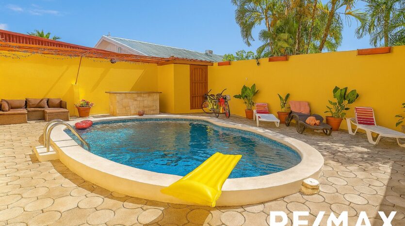 Rénové | La maison avec piscine privée est située à Jaco Sol, à seulement 2 pâtés de maisons de la plage et à distance de marche du centre-ville de Jaco. Cette maison a été récemment rénovée et est prête pour vous !! En conduisant jusqu’à la maison, vous verrez une grande cour avant et un grand parking pour 4 voitures. En entrant par la porte d’entrée, vous entrez dans le grand salon, salle à manger et cuisine à aire ouverte qui mène à la grande cour arrière avec une piscine privée et une salle de bains. À l’intérieur, vous avez 2 chambres avec une salle de bain Jack-and-Jill et une grande suite parentale avec une salle de bain principale.