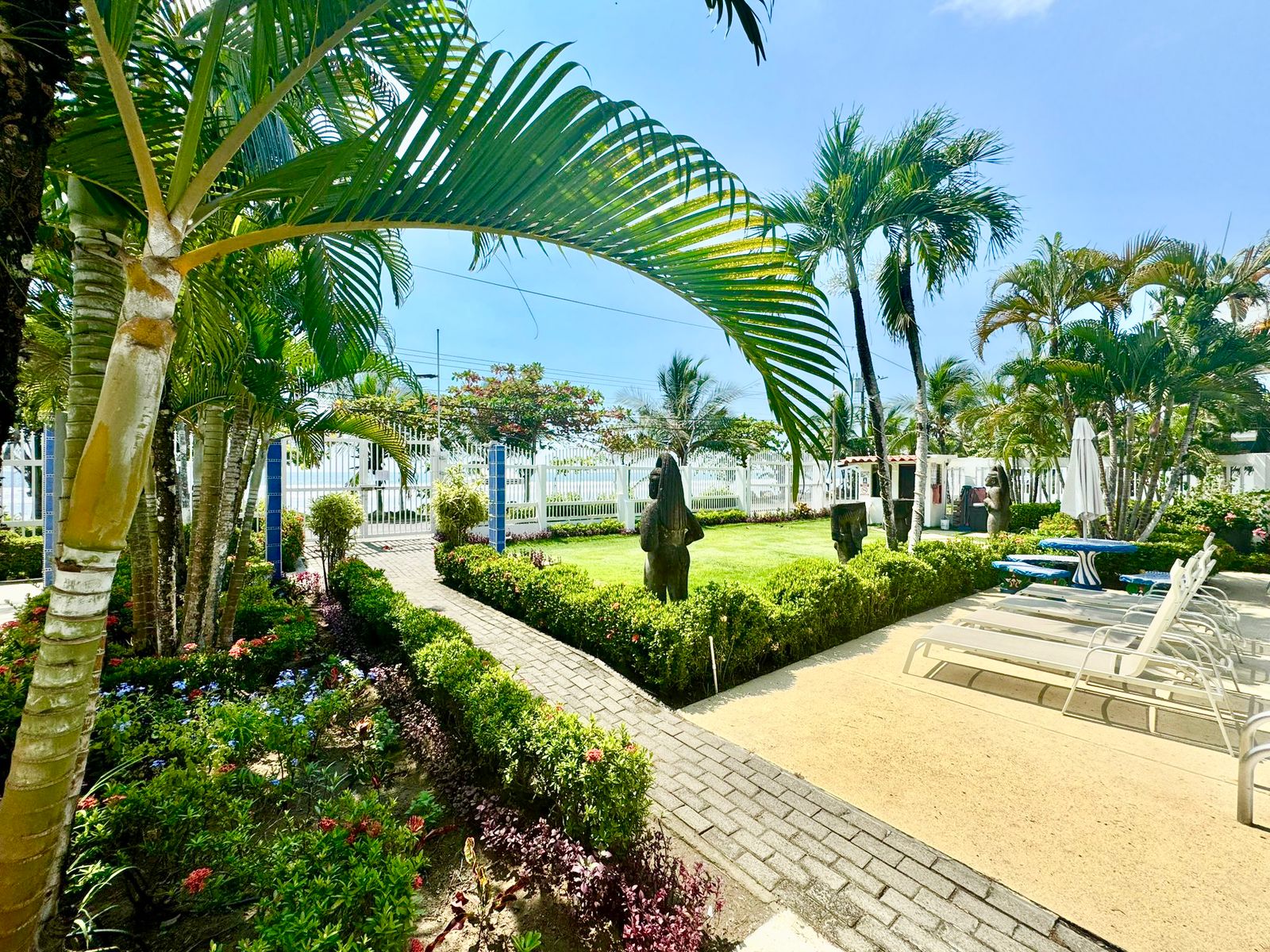 Momentos de descanso junto a la piscina bajo palmeras tropicales