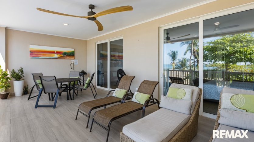 The Palms 203 is a direct oceanfront condo located on the 2nd floor of the Palms building in Jaco Beach. This spacious residence features 2 bedrooms, 2 bathrooms, and 138 m² (1,485 square feet) of well-designed interior living space, complemented by one of the largest oceanfront terraces in Jaco.
